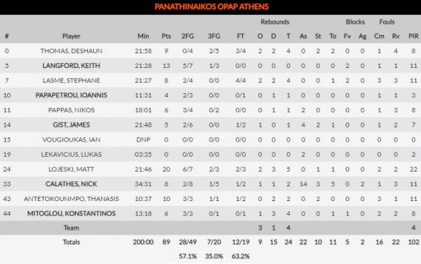 Από τους Πράσινους οι Καλάθης (8π. 14 ασ.), Λοτζέσκι (20 π.) και Αντετοκούνμπο (10 π.) ήταν οι καλύτεροι. Από τη Μακάμπι διακρίθηκαν οι Ουίλμπεκιν (24π., 8 ασ.) και Μπλακ (14π.).