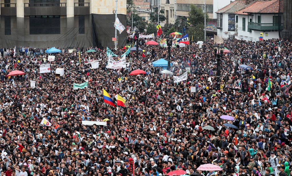 Εκατοντάδες χιλιάδες φοιτητές διαδήλωσαν στις μεγαλύτερες πόλεις της Κολομβίας την Τετάρτη, με κεντρικό αίτημα να διατεθούν περισσότεροι πόροι για τα ανώτατα εκπαιδευτικά ιδρύματα της χώρας.