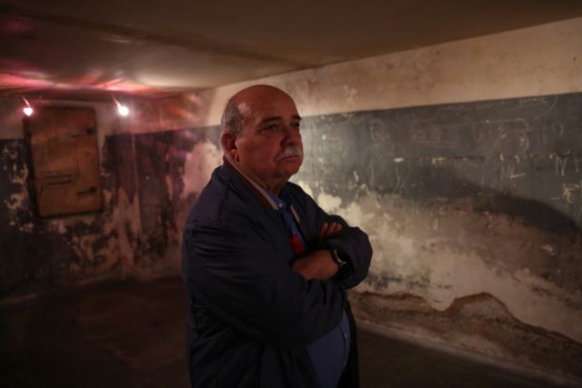 Ο Γκρέγκορ Γκιζι, εκπρόσωπος της γερμανικής αριστεράς Die Linke, επισκέπτεται τα κρατητήρια της Gestapo στην οδό Κοραή