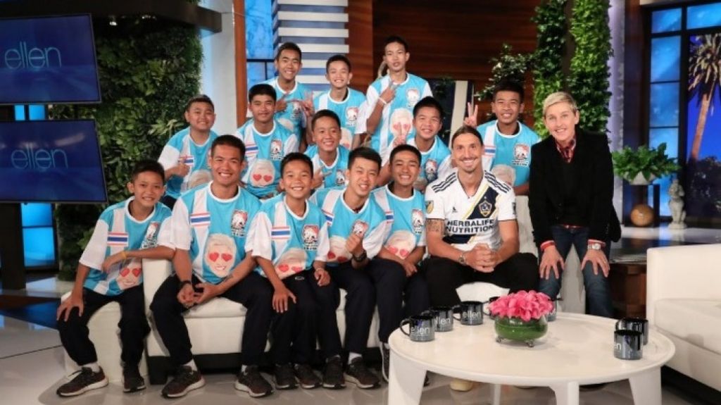 Ο Ζλάταν Ιμπραΐμοβιτς συναντήθηκε στην εκπομπή της Έλεν ΝτεΤζένερις με τους 12 νεαρούς ποδοσφαιριστές από την Ταϊλάνδη που πριν από λίγους μήνες είχαν εγκλωβιστεί σε πλημμυρισμένη σπηλιά