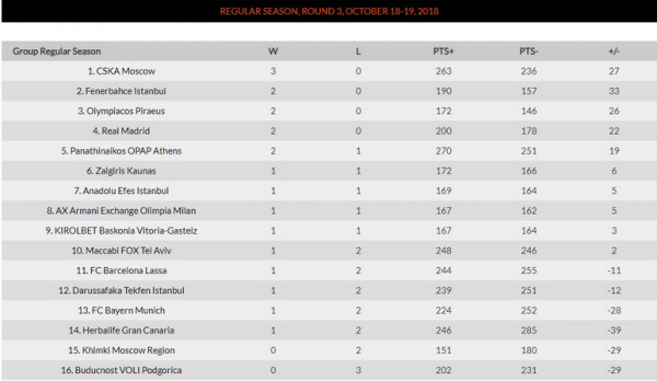 Ευρωλίγκα: Τα αποτελέσματα και η βαθμολογία