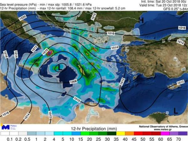 Τα φαινόμενα στο Ιόνιο και στα δυτικά-κεντρικά ηπειρωτικά θα είναι κατά τόπους ισχυρά και είναι πολύ πιθανό να συνοδευτούν από χαλαζοπτώσεις. Ενισχυμένοι άνεμοι εντάσεων 6 με 7 και τοπικά 8 μποφόρ θα πνέουν στο Ιόνιο, ενώ στο Αιγαίο οι εντάσεις των ανέμων δε θα ξεπερνούν τα 6 μποφόρ. Οι θερμοκρασίες θα σημειώσουν πτώση, ιδιαίτερα στη Βόρεια Ελλάδα.