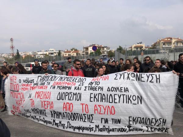 Φοιτητές και μαθητές διαμαρτύρονται για τις αλλαγές που έχει ανακοινώσει ο Κώστας Γαβρόγλου και για το νέο Λύκειο. Οπως τονίζουν οι συγκεντρωμένοι ο νόμος Γαβρόγλου θέλει να μετατρέψει το σχολείο σε εργοστάσιο που παράγει ανθρώπους προς κατανάλωση από την αγορά εργασίας για να καλύψει τις ανάγκες της». Αναφορικά με τα ΑΕΙ τονίζουν ότι θα φέρει συγχωνεύσεις τμημάτων και συνενώνεις ΑΕΙ και ΤΕΙ. Υπογράμμιζαν ότι οι αλλαγές αυτές αποκλείουν τους μαθητές απο την ουσιαστική γνώση.