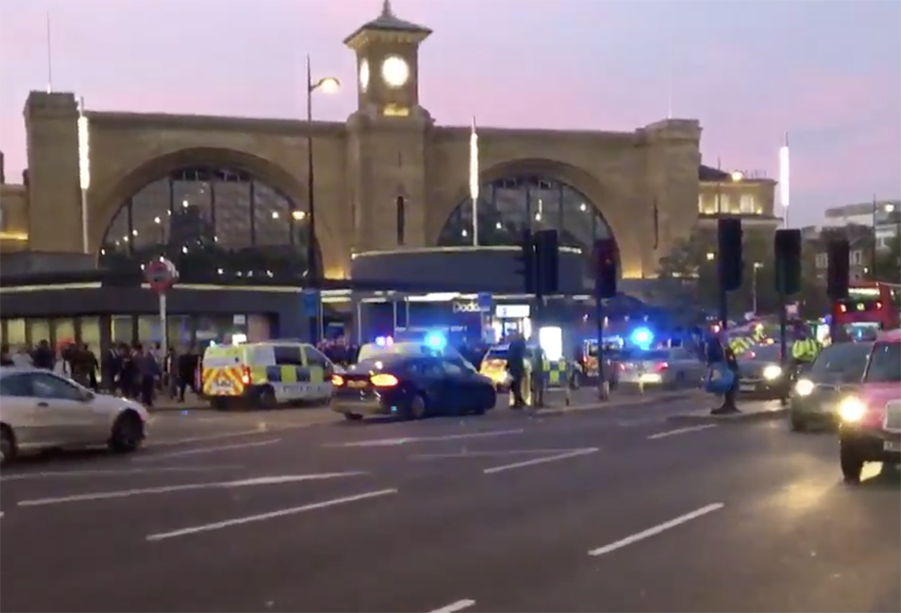 Multiple police vans and fire engines as kings cross st Pancras is evacuated pic.twitter.com/A8E3xiWVax
