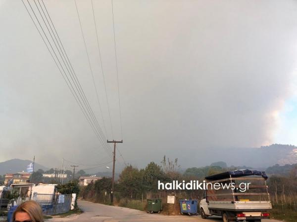 Το μέτωπο της φωτιάς είναι μεγάλο, λόγω των ισχυρών ανέμων, ενώ την κατάσταση δυσχεραίνει η διακοπή ηλεκτροδότησης στην περιοχή, όπως ανέφερε στο ραδιόφωνο του Αθηναϊκού – Μακεδονικού Πρακτορείου Ειδήσεων «Πρακτορείο FM» ο αντιδήμαρχος Σιθωνίας, Πάρης Ντέμπλας.