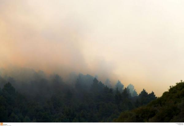 Ανεξέλεγκτη μαίνεται η πυρκαγιά η οποία από τα ξημερώματα κατακαίει δύσβατη ορεινή έκταση στην χερσόνησο Σιθωνία της Χαλκιδικής.