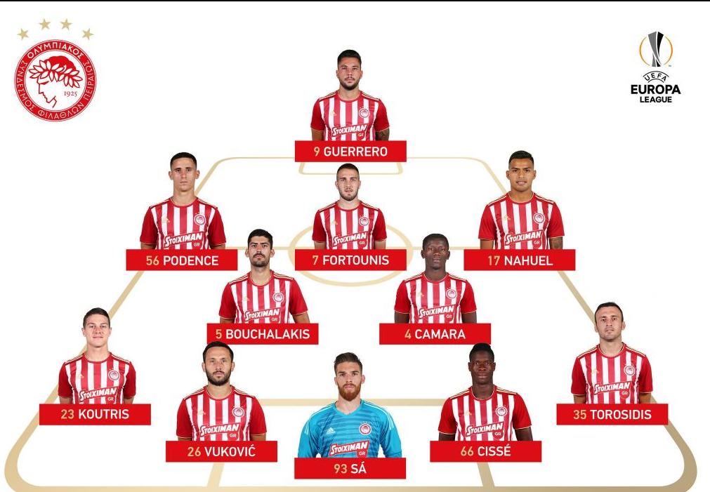 Αναλυτικά η 11άδα αποτελείται από τους εξής παίκτες: Σα, Τοροσίδης, Σισέ, Βούκοβιτς, Κούτρης, Μπουχαλάκης, Καμαρά, Φορτούνης, Ποντένσε, Ναουέλ και Γκερέρο.