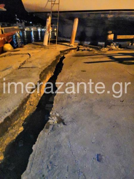 Σύμφωνα με την ιστοσελίδα imerazante.gr, ρωγμή έχει σημειωθεί και στον τραπεζοειδή προβλήτα στο λιμάνι της πόλης.