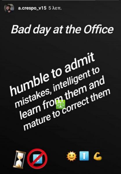 Ο Κρέσπο με ανάρτησή του στο Instagram τόνισε ότι ο Δικέφαλος πρέπει να διορθώσει τα λάθη του μετά από μια κακή μέρα. «Κακή ημέρα στη δουλειά. Είναι ταπεινό να παραδέχεσαι τα λάθη σου, έξυπνο να μαθαίνεις από αυτά και ώριμο να τα διορθώνεις», επισήμανε χαρακτηριστικά.