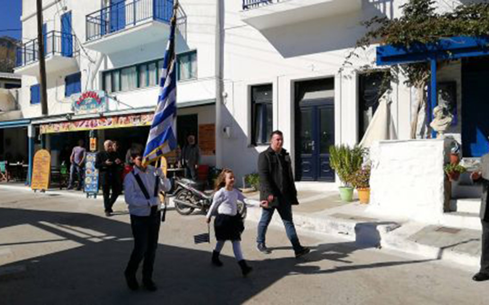 Με υπερηφάνεια παρήλασαν το πρωί της Κυριακής της 28ης Οκτωβρίου οι δύο μικροί μαθητές της πρωτοβάθμιας εκπαίδευσης στον Απόλλωνα, ένας από τους πιο απομακρυσμένους από την πόλη της Νάξου παραλιακός οικισμός.