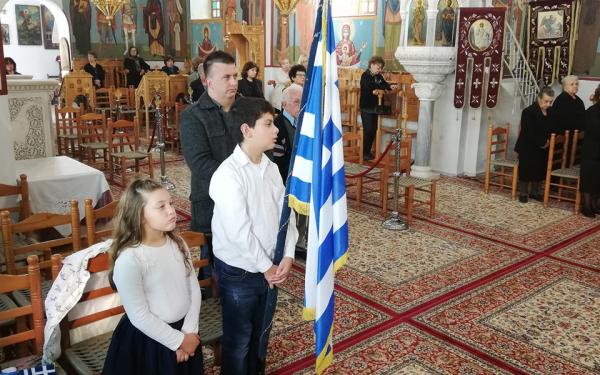 Τα παιδιά δέχτηκαν πλήθος χειροκροτήματος από τους παρευρισκόμενους ενώ νωρίτερα οι δύο μαθητές και ο εκπαιδευτικός παρακολούθησαν με κατάνυξη μαζί με τους λιγοστούς κατοίκους του παραλιακού οικισμού τη Δοξολογία.