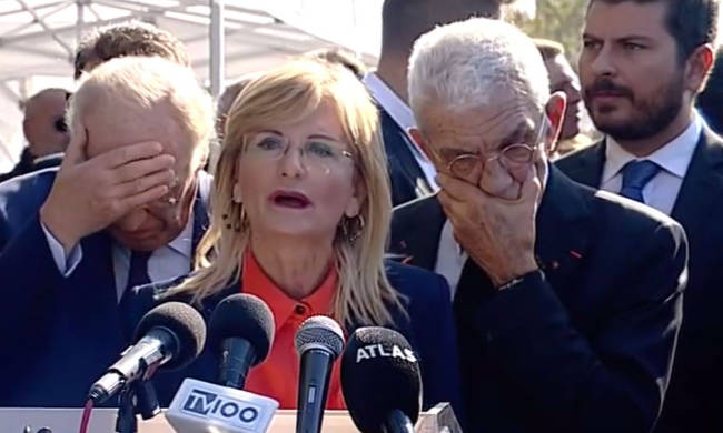 Ο πρόεδρος της Ένωσης Κεντρώων της παραχώρησε τη σειρά του, όμως στεκόταν δίπλα της για να πάρει αμέσως μετά το λόγο. Τότε, ο δήμαρχος Θεσσαλονίκης έβαλε το χέρι του στο βήμα για να προλάβει τη σειρά, προκαλώντας την οργή του Β. Λεβέντη.