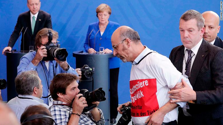 Ένας δημοσιογράφος, ο οποίος πραγματοποίησε μια διαμαρτυρία κατά τη διάρκεια της επίσημης επίσκεψης του προέδρου της Τουρκίας Ρετζέπ Ταγίπ Ερντογάν στη Γερμανία τον περασμένο μήνα κινδυνεύει να απελαθεί στην Τουρκία τον Ιανουάριο.