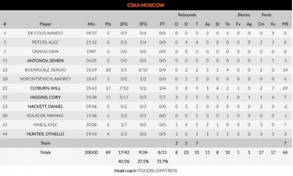 Παράλληλα οι παίκτες του Μπλατ κράτησαν τη δημιουργία της ΤΣΣΚΑ στις μόλις 4 ασίστ την ώρα που εκείνη τελείωσαν τα δύο πρωτα δεκάλεπτα στις 11. Επιπλέον «επέτρεψαν» στους γηπεδούχους να εκτελέσουν μόλις 3 βολές, «πηγή» από την οποία παίρνουν πολλούς πόντους σε κάθε ματς. Χαρακτηριστικό επίσης το τραγικό ποσοστό των παικτών του Ιτούδη στα δίποντα (7/24, 29,2%) απόρροια επίσης της εξαιρετικής άμυνας των φιλοξενούμενων