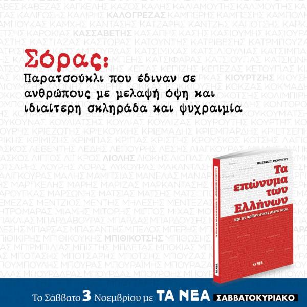 ΤΑ ΝΕΑ Σαββατοκύριακο παρουσιάζουν: Μία πρωτότυπη έκδοση, «Τα επώνυμα των Ελλήνων»