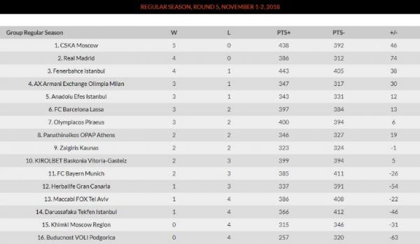 Ευρωλίγκα: Τα αποτελέσματα και η βαθμολογία