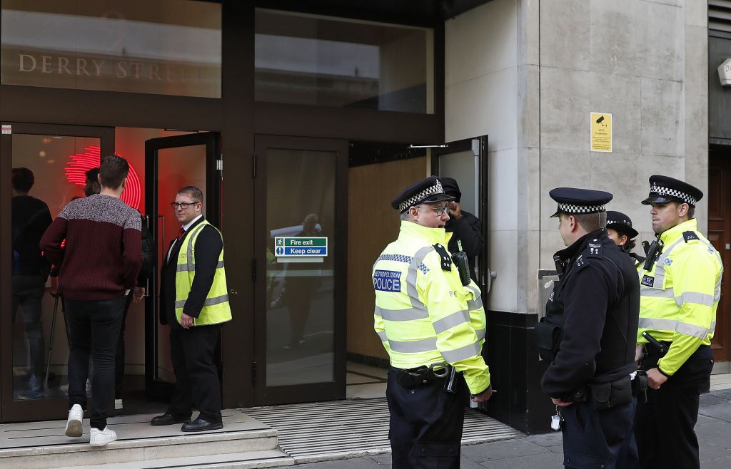 Ένοπλοι αστυνομικοί έσπευσαν στα γραφεία της Sony αφού η αστυνομία ειδοποιήθηκε για το επεισόδιο στην Ντέρι Στριτ του Κένσινγκτον, όπου βρήκαν δύο άνδρες με τραύματα από μαχαίρι.