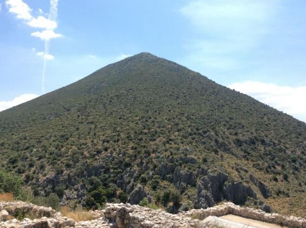 Ο «Θησαυρός του Ατρέως» (εκτός των τειχών), ο μεγαλοπρεπέστερος και πλέον αντιπροσωπευτικός θολωτός τάφος των Μυκηνών (περίπου 1250 π.Χ.), άριστα διατηρημένος.