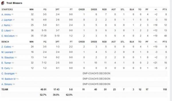 Με εκτελεστή τον Σι Τζέι ΜακΚόλουμ, που κατέγραψε στο ενεργητικό του 40 πόντους, 5 ριμπάουντ, 6 ασίστ και 4 κλεψίματα, οι Μπλέιζερς νίκησαν εντός έδρας τους Μπακς με 118-103.
