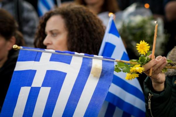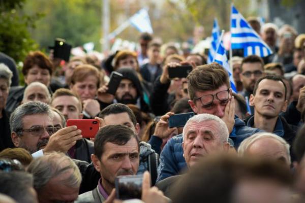 Η σορός του Κωνσταντίνου Κατσίφα μεταφέρθηκε κάτω από μια τεράστια ελληνική σημαία στην εκκλησία με το πλήθος να μην σταματάει να φωνάζει συνθήματα και να ψάλλει και τον εθνικό ύμνο.