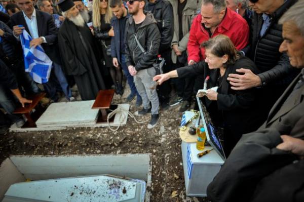 Η νεκρώσιμη ακολουθία εψάλη σε κλίμα οδύνης και θρήνου στον ιερό ναό του Αγίου Αθανασίου, ενώ νωρίτερα, η σορός είχε τεθεί στην κεφαλή της νεκρικής πομπής με την οικογένεια του 35χρονου Κωνσταντίνου Κατσίφα να τον «ακολουθεί» στην τελευταία του διαδρομή.