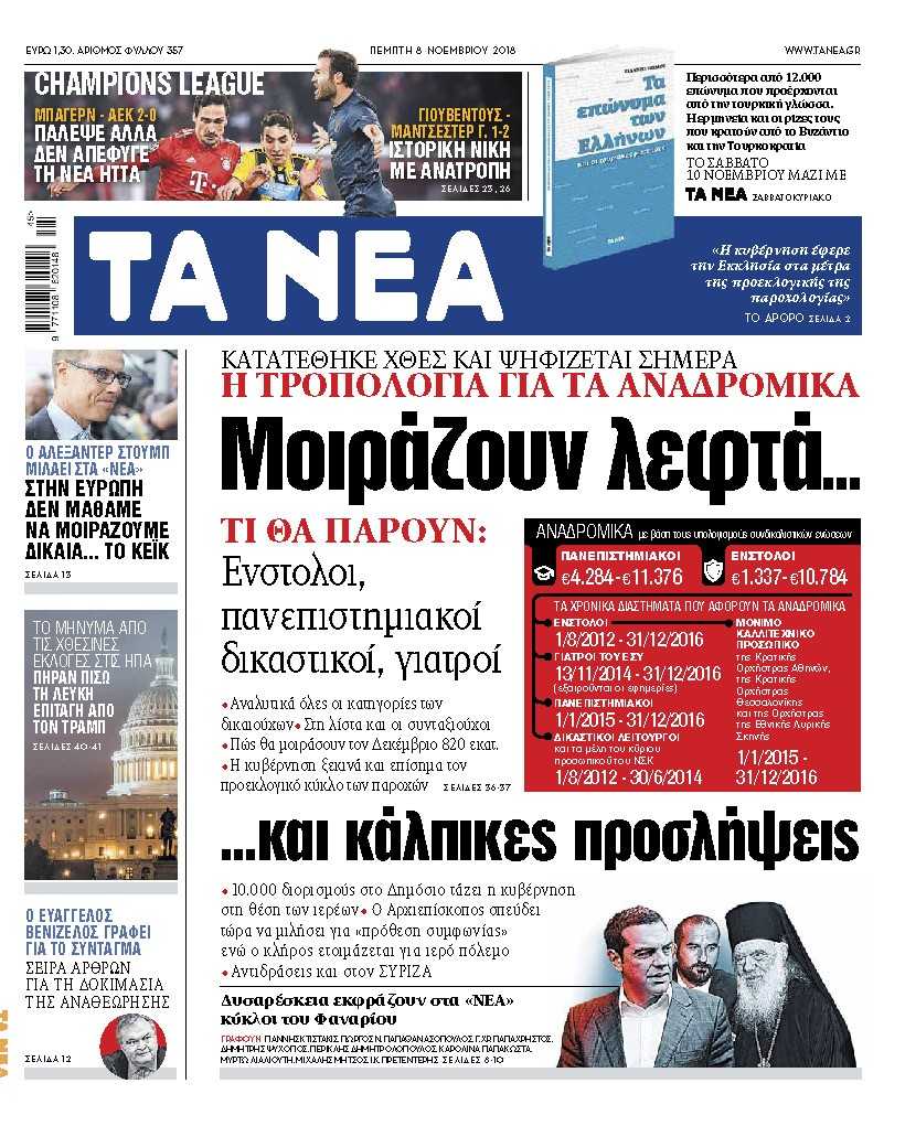Διαβάστε στα «ΝΕΑ» της Πέμπτης: Μοιράζουν λεφτά και κάλπικες προσλήψεις