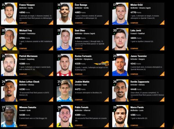 Μετά από τέσσερις αγωνιστικές στο Europa League, ο Κώστας Φορτούνης φιγουράρει στην 22η θέση των πιο φορμαρισμένων παικτών της διοργάνωσης.