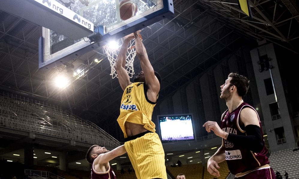 Ο Αμερικανός σέντερ της ΑΕΚ έπαιζε μόνος του την Λιετκαμπέλις και με 28 πόντους έδωσε τη νίκη στην ομάδα του με 65-59 για το FIBA Champions League. Ο σέντερ της Ένωσης ήταν με μια λέξη: απολαυστικός. Τελείωσε το ματς με 8/11 δίποντα και 12/16 βολές ενώ μάζεψε εννιά ριμπάουντ έχοντας και τρία κλεψίματα. Ο Λούκα Μπάνκι είδε στο πρόσωπο του τον απόλυτο ηγέτη της ΑΕΚ με τους γηπεδούχους να παίρνουν τη νίκη χωρίς να έχουν στο ροστερ τους τους Καββαδα, Μέις, Σάκοτα και Ξανθοπουλο.