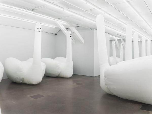 Ο Βρετανός καλλιτέχνης David Shrigley έχει γεμίσει μια γκαλερί στο Spritmuseum της Στοκχόλμης με γιγαντιαίους φουσκωτούς κύκνους ,οι οποίοι φουσκώνουν και ξεφουσκώνουν σε κύκλους 12 λεπτών.