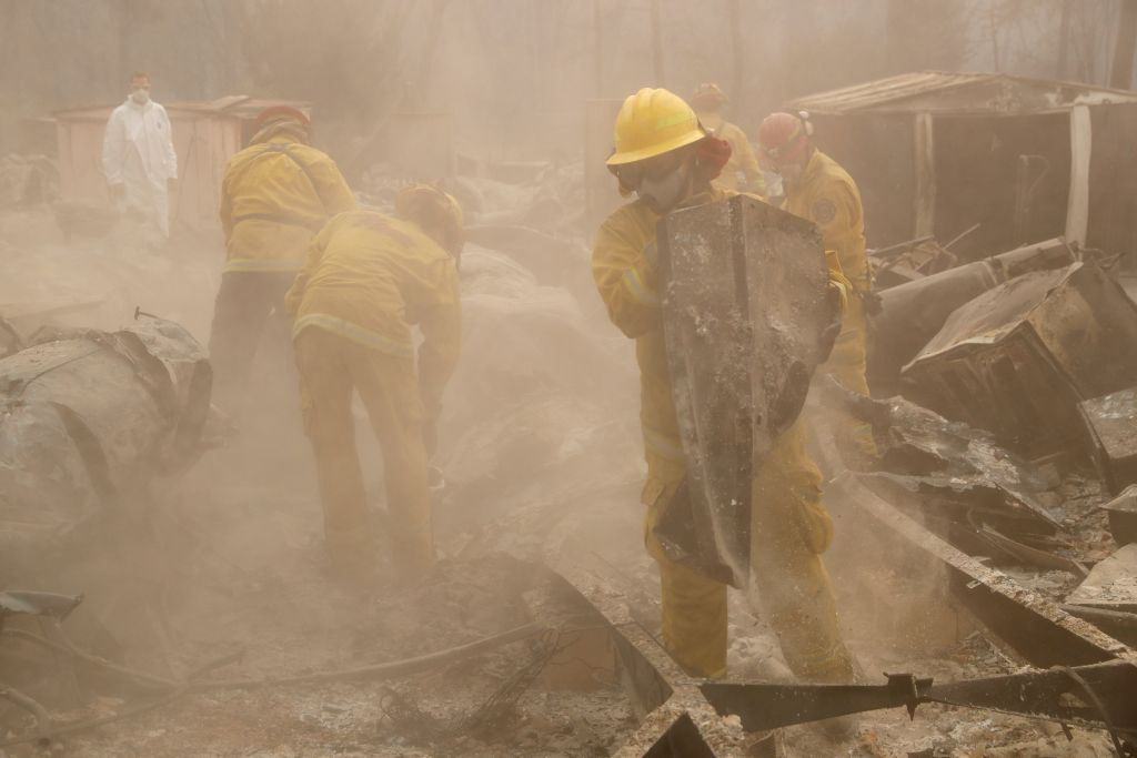Η προσπάθεια να εντοπιστούν λείψανα εντείνεται, έξι ημέρες μετά την εκδήλωση της πυρκαγιάς, η οποία κατέστρεψε πάνω από 8.800 σπίτια και άλλα κτίρια, τα περισσότερα στην Πάρανταϊς, μια πόλη όπου ζούσαν άλλοτε 27.000 άνθρωποι και μεγάλο μέρος της μετατράπηκε σε στάχτες από τις φλόγες της πυρκαγιάς Καμπ, που συνεχίζει να καίει από την Πέμπτη.