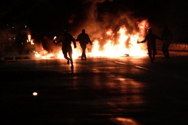 Ομάδα περίπου 30 – 40 ατόμων έβαλαν φωτιά σε θρανία, πίνακες και άλλα αντικείμενα, που χρησιμοποίησαν ως οδοφράγματα.