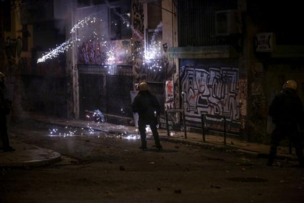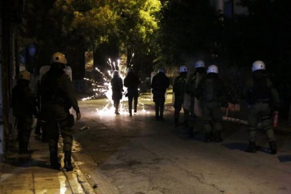 Νεαρά άτομα πετούν πέτρες και βόμβες μολότοφ κατά αστυνομικών και μέσα από κτίριο του Πολυτεχνείου, ενώ παράλληλα επεισόδια σημειώνονται στις οδούς Στουρνάρη, Τοσίτσα και Τσαμαδού.
