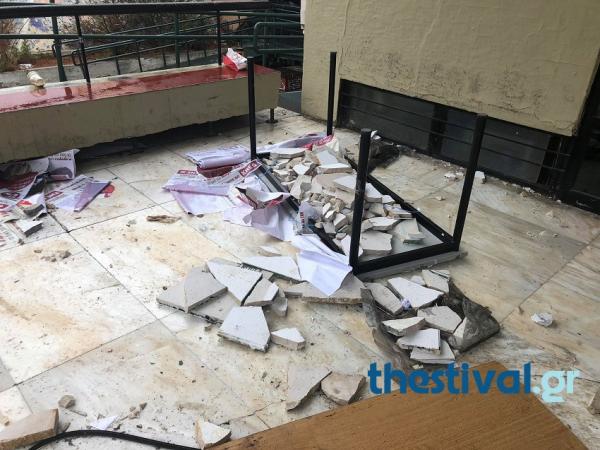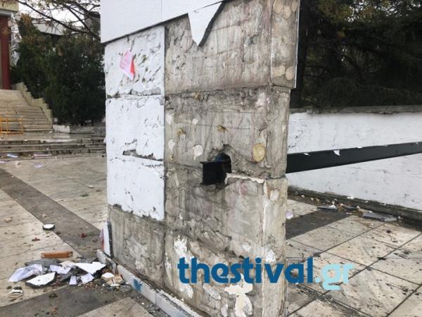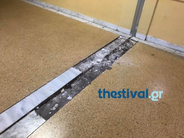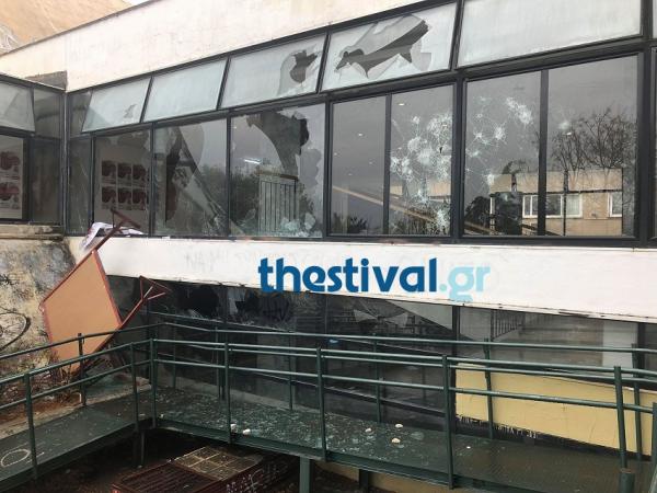 Σπασμένα πεζοδρόμια, ξεκολλημένα πλακάκια και θρυμματισμένες τζαμαρίες συνθέτουν το σκηνικό των βανδαλισμών που έλαβαν χώρα στην Πολυτεχνική Σχολή του ΑΠΘ.