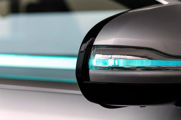 Ξεκινώντας από τα βασικά δηλαδή το πρόβλημα ταυτοποίησης του αυτοκινήτου ως αυτόνομου, η Mercedes-Benz επέλεξε να το καταστήσει σαφές με την αφθονία φωτισμών σε τιρκουάζ απόχρωση.