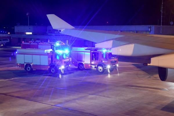Η Μέρκελ και οι υπόλοιποι επιβαίνοντες παρέμειναν στο αεροπλάνο μετά την προσγείωσή του, καθώς μηχανικοί πραγματοποιούσαν έλεγχο στα φρένα, με τα οχήματα της πυροσβεστικής να παραμένουν σε κοντινή απόσταση.