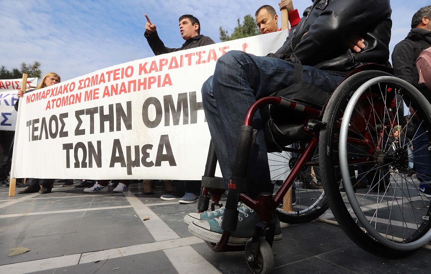 Συγκέντρωση διαμαρτυρίας στην Κλαυθμώνος για την Παγκόσμια Ημέρα των ΑμεΑ