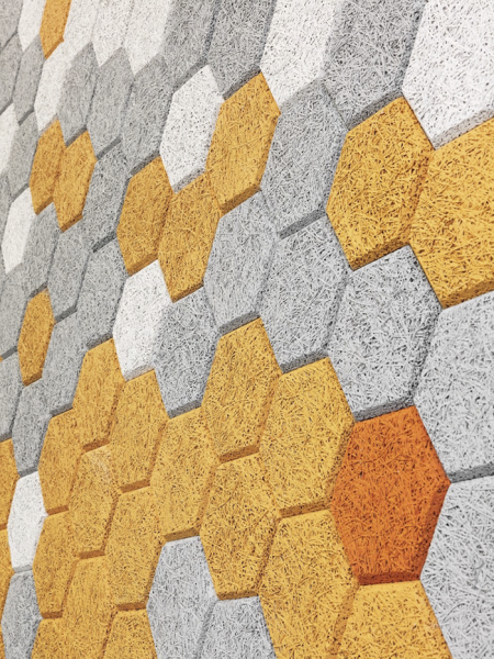 Το στούντιο σχεδιασμού «From us with Love» έχει δημιουργήσει μοναδικά πλακίδια τοίχου χρησιμοποιώντας ένα υλικό που ονομάζεται woodwool, δηλαδή ξύλο και μαλλί. Αυτό το υλικό, επίσης γνωστό ως excelsior, χρησιμοποιείται συνήθως για είδη όπως η συσκευασία, το μαξιλάρι και ακόμη και η γέμιση του παιχνιδιού. Τώρα μετατρέπεται σε εσωτερικό σχεδιασμό που όχι μόνο φαίνεται καλό, αλλά είναι επίσης υγρασία απορροφητικό και ανθεκτικό στη φωτιά.