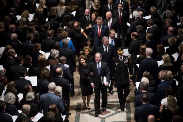 Ο Ντόναλντ Τραμπ και τέσσερις πρώην πρόεδροι των ΗΠΑ παρέστησαν στην κηδεία, με τιμές αρχηγού κράτους, του Τζορτζ Χέρμπερτ Ουόκερ Μπους, μια σπάνια στιγμή ενότητας σε μια διχασμένη χώρα