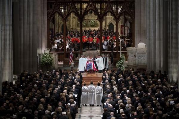 Ο Ντόναλντ Τραμπ και τέσσερις πρώην πρόεδροι των ΗΠΑ παρέστησαν στην κηδεία, με τιμές αρχηγού κράτους, του Τζορτζ Χέρμπερτ Ουόκερ Μπους, μια σπάνια στιγμή ενότητας σε μια διχασμένη χώρα.