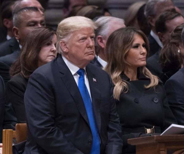 Ο Ντόναλντ Τραμπ δεν πήρε τον λόγο κατά τη διάρκεια της τελετής. Όμως, από τον θάνατό του 41ου προέδρου των ΗΠΑ, ο νυν ένοικος του Λευκού Οίκου έχει πολλαπλασιάσει τα μηνύματα σεβασμού.