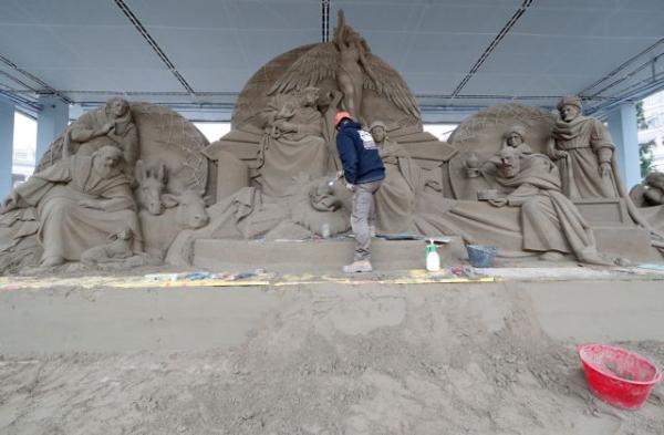 Αν και η άμμος παραπέμπει σε καλοκαίρι, ο ευφάνταστος καλλιτέχνης Ρικ Βαράνο σκέφτηκε να τη χρησιμοποιήσει τα Χριστούγεννα, για να κατασκευάσει τη φάτνη του Βατικανού στην πλατεία του Αγίου Πέτρου.