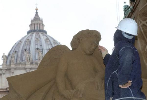 Μια πρωτότυπη φάτνη κοσμεί φέτος τα Χριστούγεννα την πλατεία του Αγίου Πέτρου στο Βατικανό. Εδώ και δύο εβδομάδες τέσσερις γλύπτες επιμελούνται τη δημιουργία μιας φάτνης χρησιμοποιώντας ως μοναδικό υλικό την άμμο.