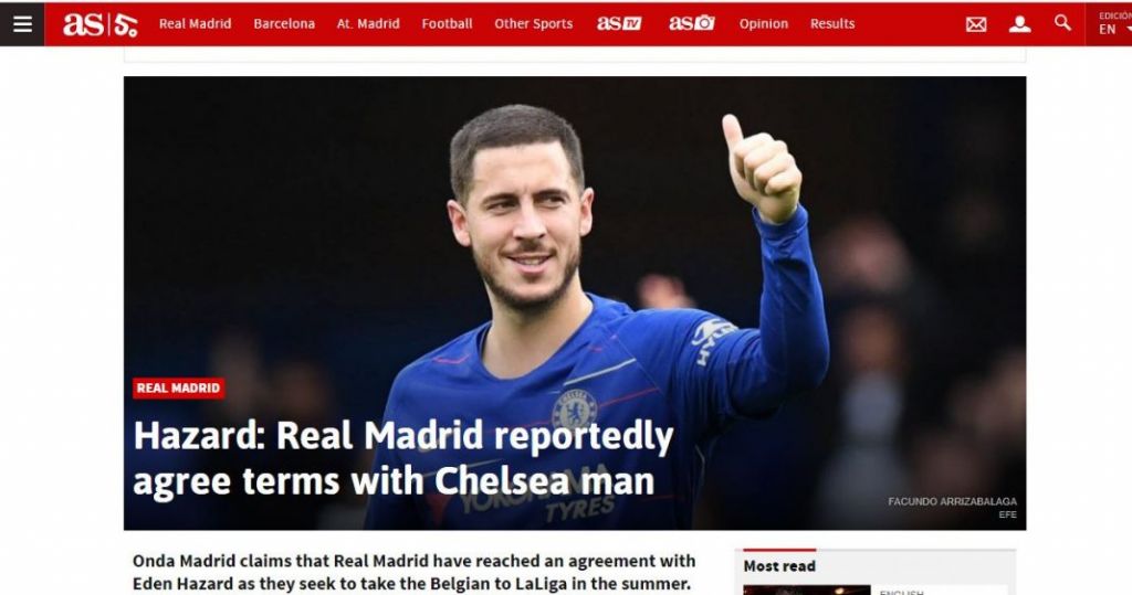 Σύμφωνα με όσα αποκάλυψε ο ραδιοφωνικός σταθμός της Ισπανίας, η Ρεάλ έχει συμφωνήσει με τον Εντέν Αζάρ προκειμένου να συνεχίσει την καριέρα του στη Μαδρίτη από το καλοκαίρι! Να αναφέρουμε ότι την είδηση αναπαράγει και η μαδριλένικη ιστοσελίδα «AS» ως πρώτη είδηση μάλιστα.
