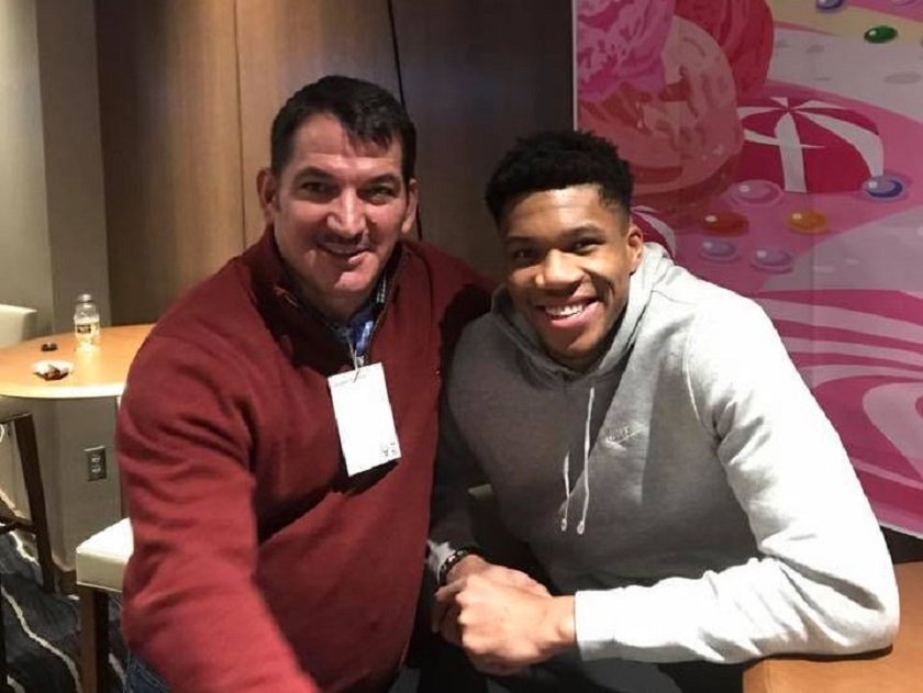 Συγκεκριμένα, ο πρώην ολυμπιονίκης στην άρση βαρών, αφού ολοκληρώθηκε το ματς, συνάντησε τον Greek Freak και φωτογραφήθηκε μαζί του. Αξίζει να σημειωθεί πως ο πρόεδρος της ελληνικής ομοσπονδίας άρσης βαρών ανέβασε στο Facebook τη φωτογραφία και έγραψε χαρακτηριστικά: «Ελλάδα παντού! With the Greek Freak! #Giannis_Ant #Mil_Bucks #Greece_is_everywhere».