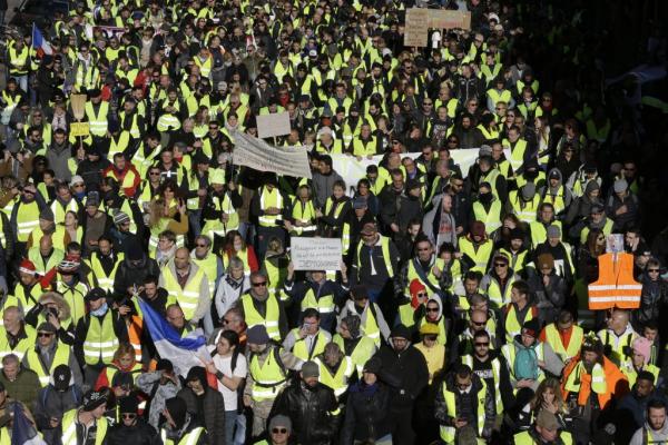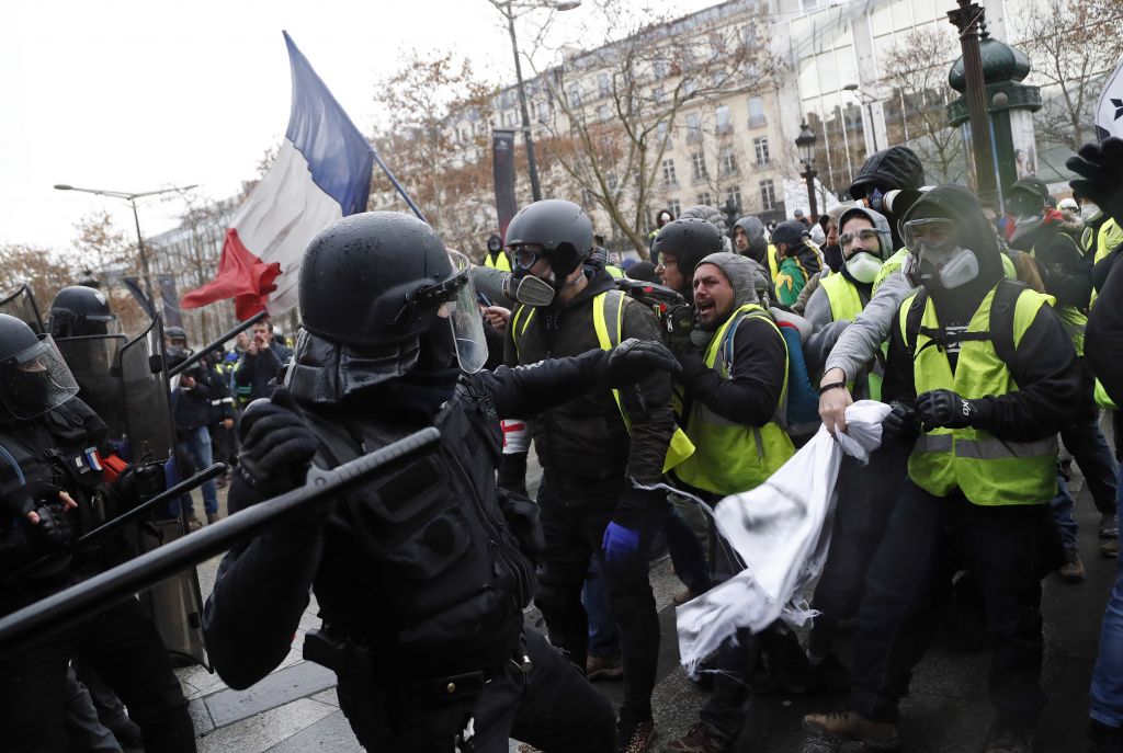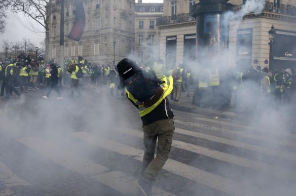 Το μεσημέρι του Σαββάτου διαδηλωτές συγκρούστηκαν με αστυνομικούς, με τους τελευταίους να κάνουν εκτεταμένη χρήση δακρυγόνων. Κυρίως στην περιοχή των Ηλυσίων Πεδίων εκτοξεύτηκαν τα πρώτα δακρυγόνα την ώρα που χιλιάδες διαδηλωτές φώναζαν συνθήματα εναντίον του Μακρόν.
