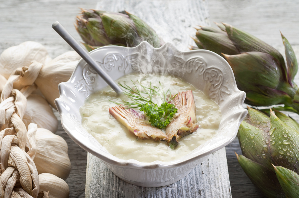 Σε μια κατσαρόλα σοτάρετε με το λάδι το κρεμμύδι ψιλοκομμένο. Προσθέτετε τις αγκινάρες και σβήνετε με κρασί. Ρίχνετε το νερό, αλάτι και πιπέρι και αφήνετε τη σούπα να σιγοβράσει. Όταν η σούπα είναι έτοιμη και έχουν μαλακώσει οι αγκινάρες, πολτοποιείτε το μείγμα και προσθέτετε το γάλα και το τυρί. Το αφήνετε να πάρει μια βράση και το κατεβάζετε από τη φωτιά. Γαρνίρετε τη σούπα με σχοινόπρασο και τη σερβίρετε ζεστή.