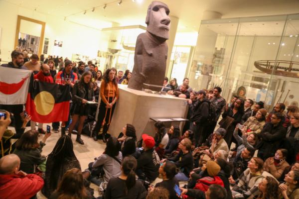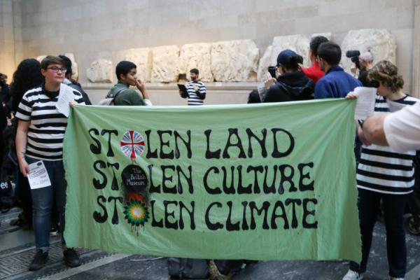 Το περασμένο Σάββατο, η θεατρική ομάδα διαμαρτυρίας «BP Or Not BP» διοργάνωσε μια ανεπίσημη ξενάγηση στα συλλημένα από διάφορες χώρες αντικείμενα που κοσμούν το Βρετανικό Μουσείο. Στην «Ξενάγηση των Κλεμμένων Αντικειμένων» μίλησαν μέλη της ομάδας που έλκουν καταγωγή από την Κύπρο, τους Αβορίγινες της Αυστραλίας, το Ιράκ, τη Χαβάη και τους Μαορί της Ν. Ζηλανδίας.