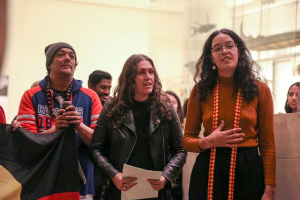 Όπως αναφέρει το ΑΠΕ-ΜΠΕ η πρώτη στάση των περίπου 150 που «ξεναγήθηκαν» ήταν η «Αίθουσα του Διαφωτισμού». Μίλησε ο Αβορίγινας Ρόντνεϊ Κέλι, ο οποίος εδώ και δύο χρόνια εκστρατεύει για τον επαναπατρισμό της ασπίδας Gwegal. Ο Κέλι, απόγονος έκτης γενιάς του πολεμιστή Κούμαν, εξήγησε ότι την ασπίδα του προγόνου του άρπαξε ο Κάπτεν Κουκ, κατά την πρώτη συνάντηση Βρετανών και Αβορίγινων, το 1770 στον Κόλπο Μπότανι.