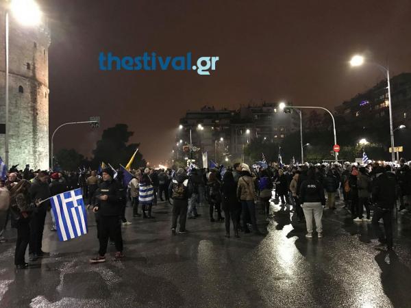 Συγκέντρωση για την ελληνικότητα της Μακεδονίας πραγματοποιούν αυτή την ώρα μπροστά στο Λευκό Πύργο μέλη συλλόγων που αντιτίθενται στη συμφωνία των Πρεσπών.