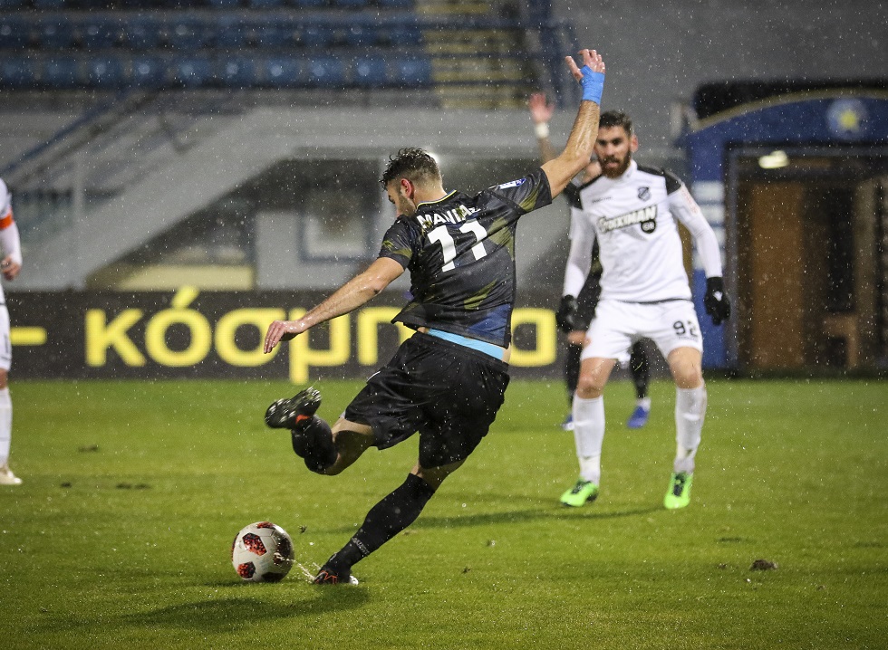 Πιο αναλυτικά, οι γηπεδούχοι είχαν την πρωτοβουλία των κινήσεων από την σέντρα, χωρίς να μπορούν να την μετουσιώσουν σε γκολ. Οι φιλοξενούμενοι στην πορεία κατάφεραν να ισορροπήσουν τα πράγματα και εν τέλει να ανοίξουν και το σκορ. Ο Δεληγιαννίδης στο 26′ με το δεύτερο προσωπικό του τέρμα στη Superleague (το πρώτο ήταν κόντρα στον Παναθηναϊκό) έκανε το 1-0 μετά από εξαιρετική απευθείας εκτέλεση φάουλ. Ο ΟΦΗ ήταν έτοιμος για μεγάλο «διπλό». Το κρατούσε μέχρι και το 61ο λεπτό. Όμως ο Τόνσο έσωσε τους γηπεδούχους.